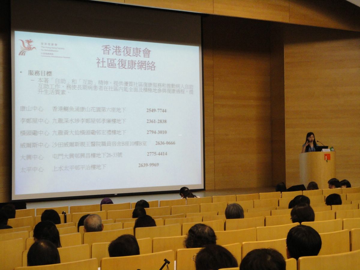 The talk started with a presentation conducted by Dr. MA Kai-yiu, a Specialist in Rheumatology, who illustrated the SLE symptoms with some photos, and provided a clear explanation of the remedies, including different types of medications and the new trend of treatments. Then, Ms. KWOK Suet-kei, a Rheumatology nurse, introduced the key points of daily self-care for SLE patients so that the participants can acquire the related knowledge.