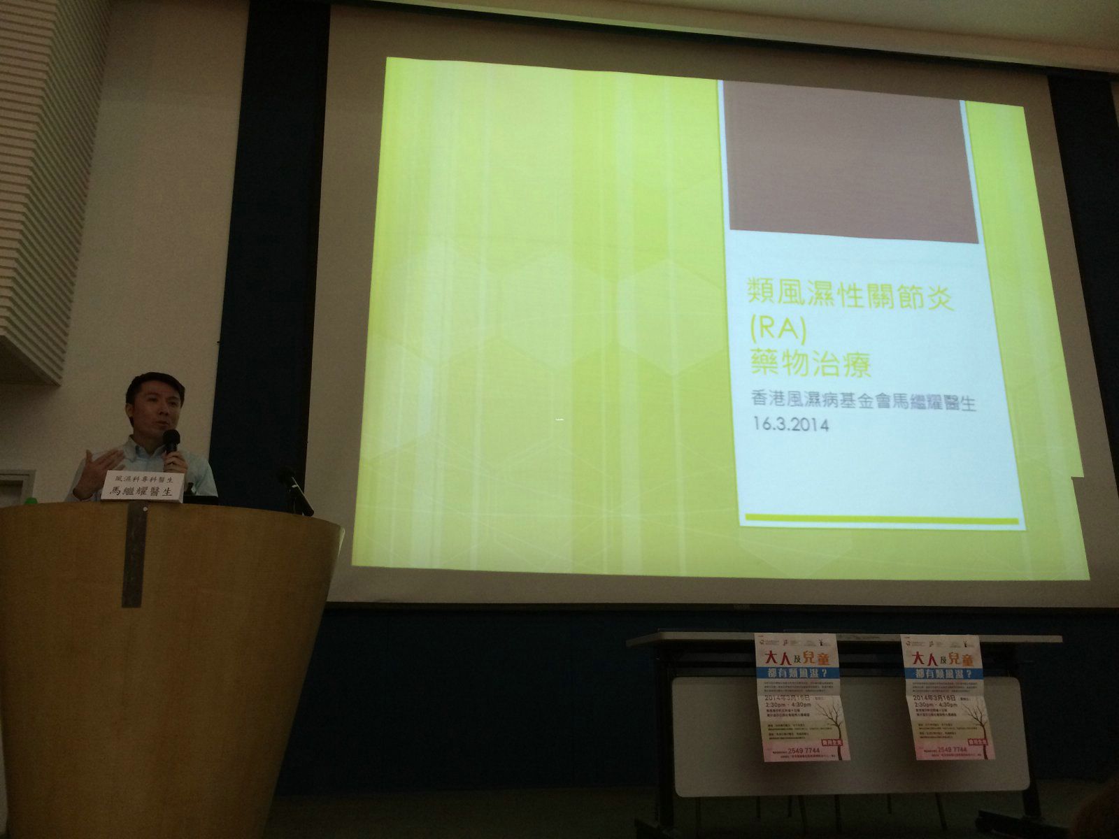 JSLE & SLE Talk was taken part in Hall, 1/F, Duke of Windsor Social Service Building on 16th March 2014. The talk aimed to enhance people’s understanding of the diagnosis and treatment of JIA and RA. There were 61 participants in total.