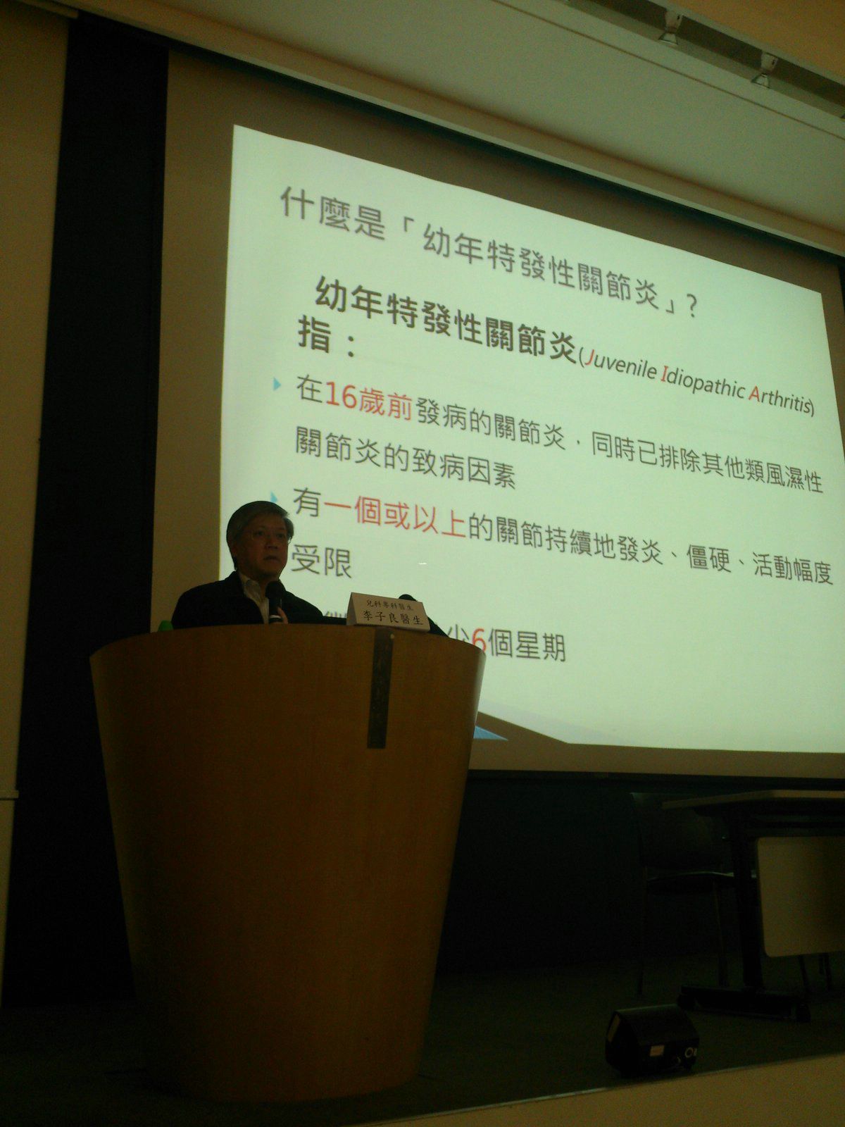 The talk was started by Dr. LEE Tsz Leung a specialist in Paediatrics, to introduce the common types of paediatric rheumatism and explained the characteristics and diagnosis of Juvenile idiopathic Arthritis (JIA). Children, who were younger than 16-year-old and suffered from inflammation for more than 6 weeks in more than 1 joint, might be diagnosed as JIA. Joint might get distorted or lose its function if the disease was untreated. Dr. LEE urged patients should set up an all-rounded treatment strategy including physiotherapy, occupational therapy and psycho-education to improve the condition. Moreover, patients could join the self-help group like Hong Kong Paediatric Rheumatism Association to share experiences and achieve mutual support. Once again, Dr. LEE emphasized the importance of seeking advices from medical personnel. Health condition could be obviously improved and mobility could be restored if appropriate treatment strategy was made as soon as possible.