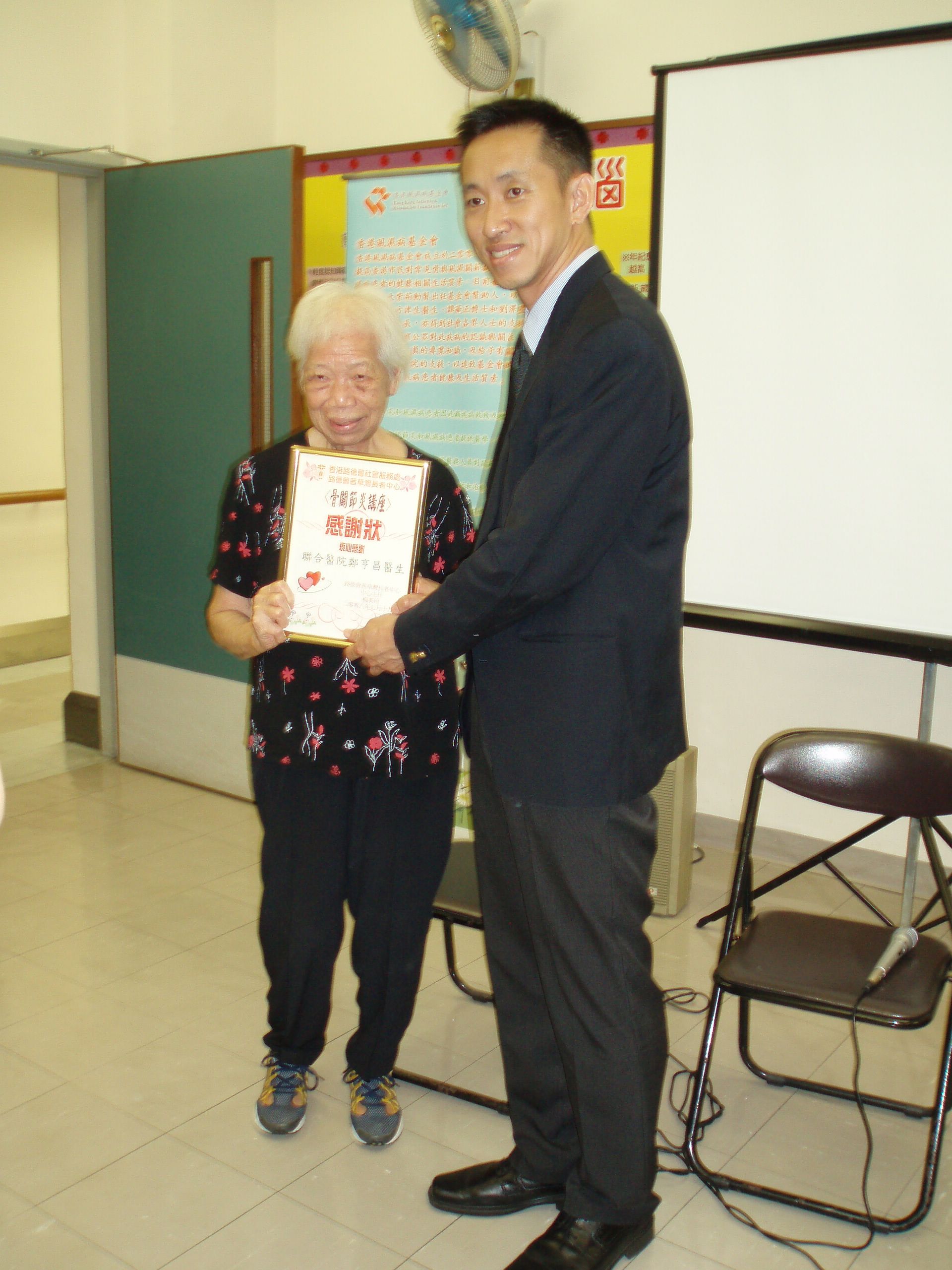 香港風濕病基金會聯同路德會茜草灣長者中心合辦一個有關「骨關節炎」講座,當日有四十位長者參與講座,大家都留心兩位醫生對有關疾病資訊的講解,而病友的分享更令在場人士對「骨關節炎」及換骹手術有更深的了解。