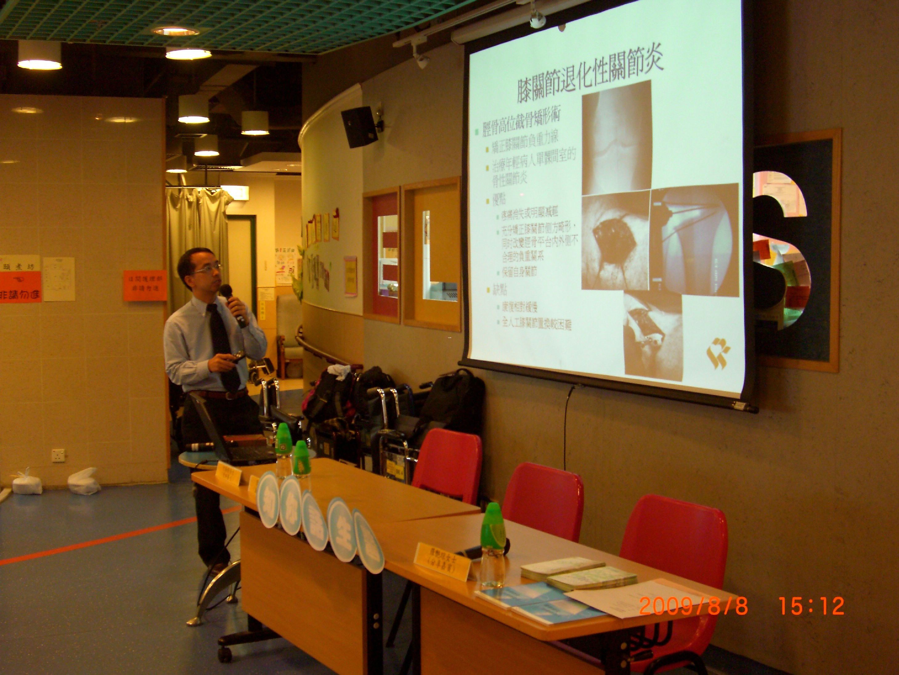 活動內容:骨關節炎的成因及治療,並有病者分享經驗