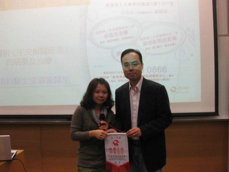 為了讓銀屑病關節炎患者和公眾更了解銀屑病關節炎的病徵和此病症與眼疾的關係,基金會聯同香港復康會社區資源網絡和銀屑互關會合辦名為「銀屑病(牛皮癬關節炎)都關眼事?!」的健康教育講座。
