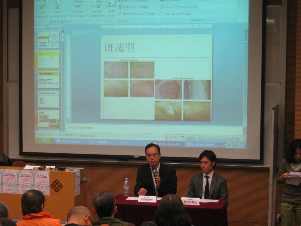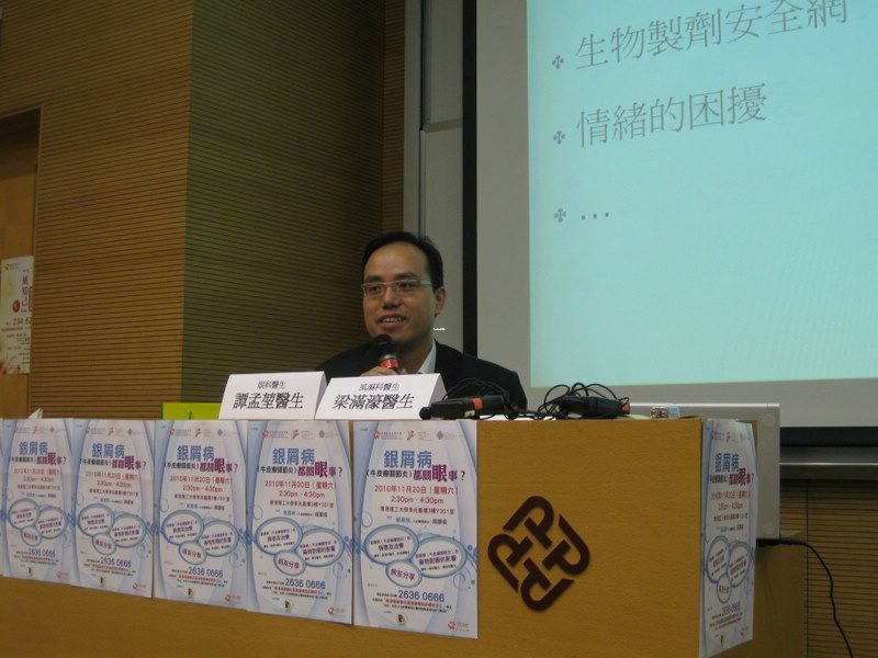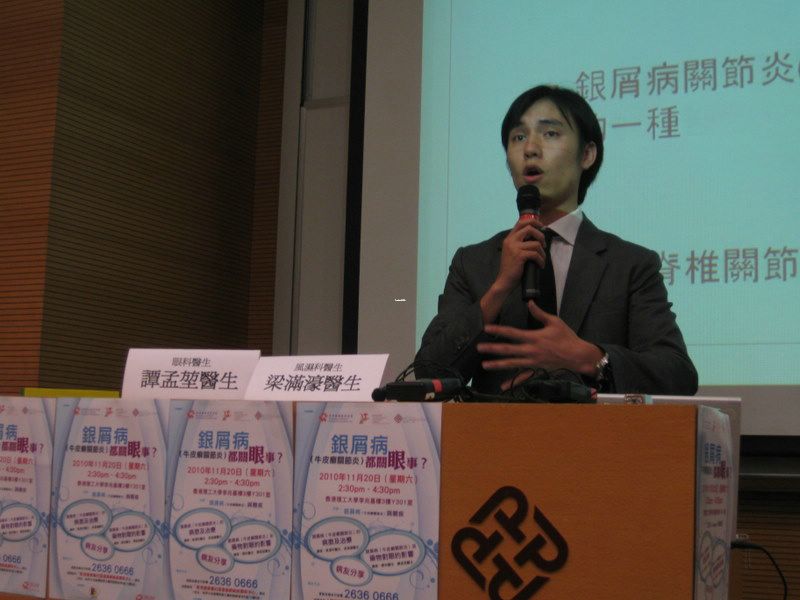 講座於2010年11月20日在香港理工大學李兆基樓3樓Y301室舉行,共有約120位參加者出席。講座先由風濕科醫生梁滿濠醫生講解銀屑病(牛皮癬關節炎)的病徵及治療;再由眼科醫生譚孟堃醫生講解銀屑病(牛皮癬關節炎)及藥物對眼的影響;及後更有銀屑護關會主席和會員講述他們面對疾病的經歷,以勉勵病友積極對面人生。最後的問答環節,兩位醫生都熱心回答觀眾的提問,讓參加者獲益良多。