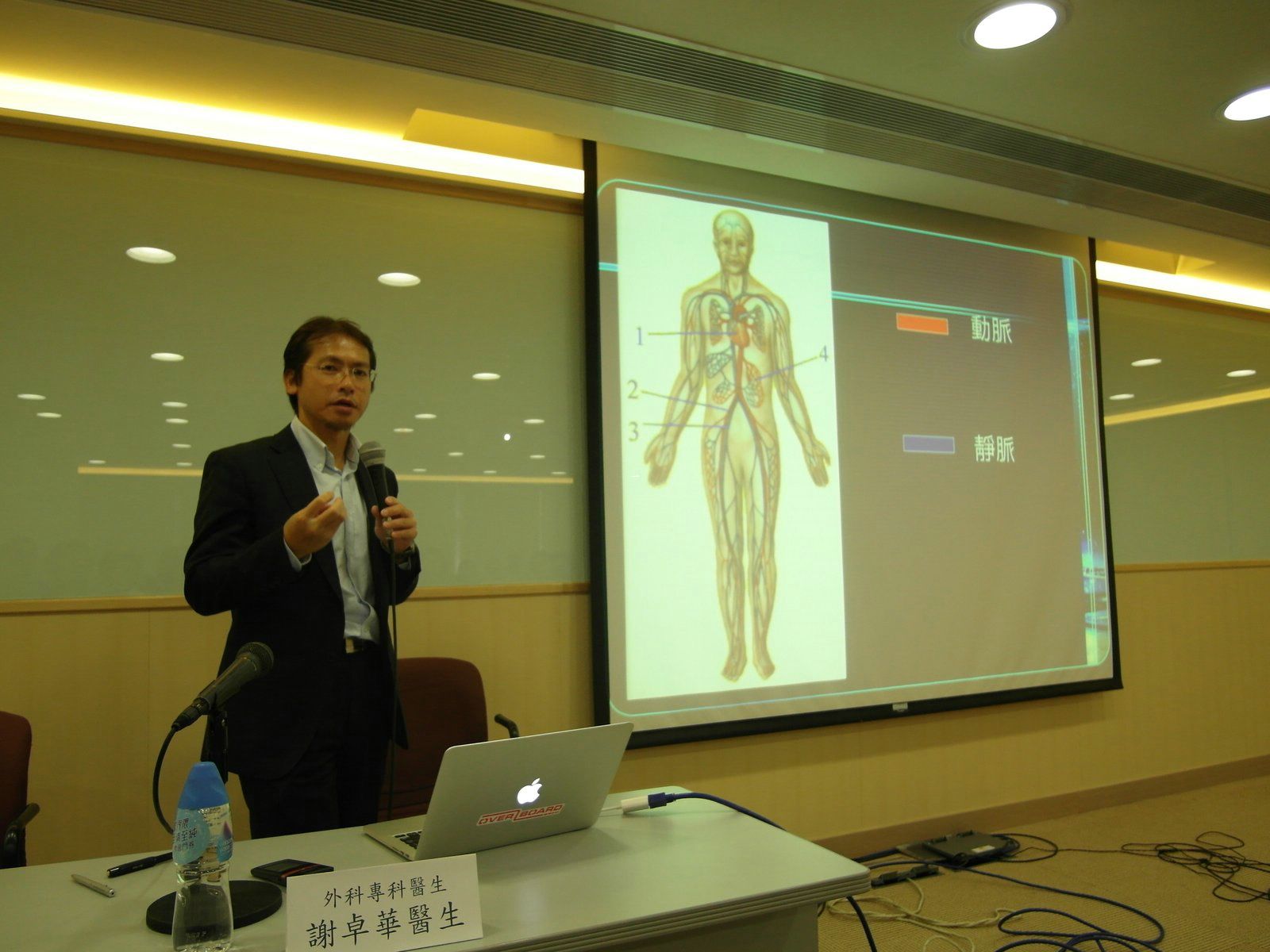Apart from this, the talk was continued by Dr. TSE Cheuk Wa Chad, a specialist in General Surgery, to introduce different kinds of vascular surgery. Dr. TSE analysed the pros and cons of different surgeries and emphasized that the decision of surgery mostly depended on the patients’ condition. Once medications could not control the illness effectively, doctors would consider applying surgery to prevent the risk of complications such as vascular occlusion, organ failure or stoke. The practice of treatment was changed recently. Doctors would consider applying surgery much earlier than the past as there was no cure method once the vessels were completely blocked.