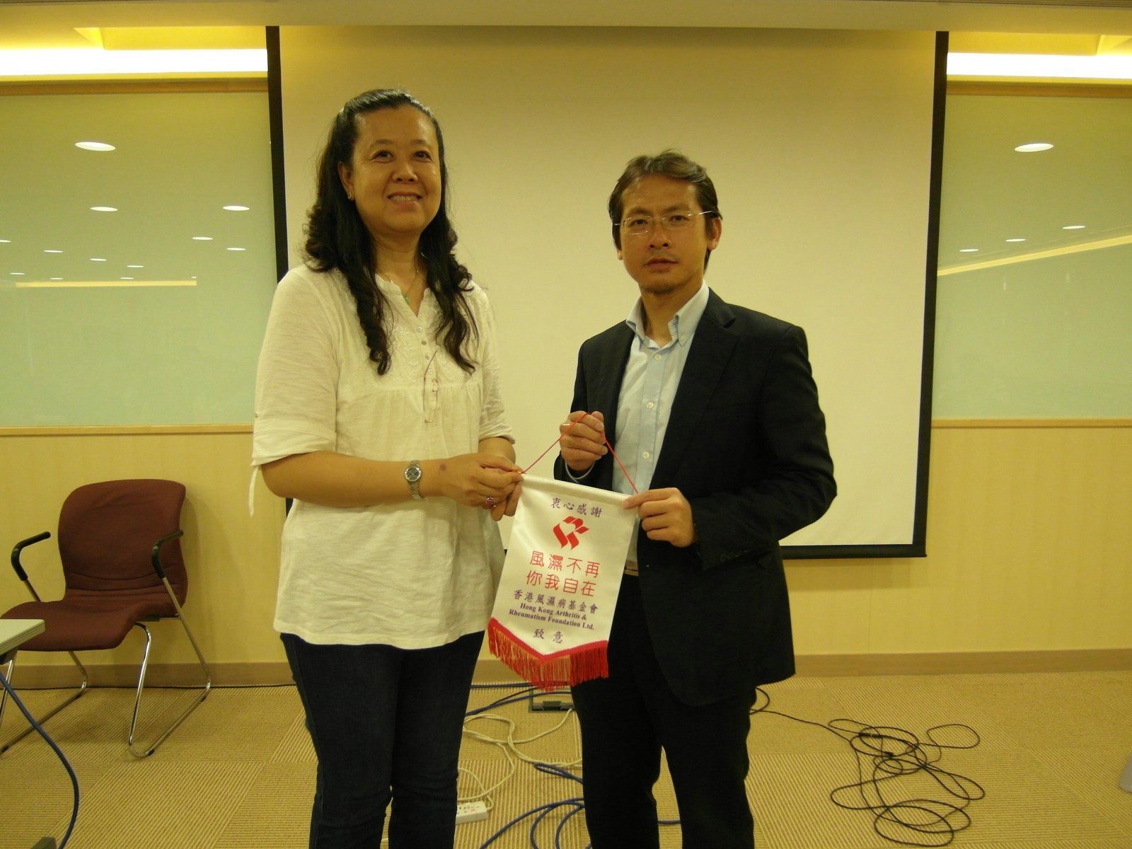 Members of Systemic Vasculitis Mutual Support Group introduced the activities organized by the group afterward. Mother of a little boy suffering from Kawasaki disease and a patient suffering from Takayasu Arteritis shared their experiences in searching from help and treatment in order to arouse the public’s attention on these rare diseases. Besides, they encouraged those who suspected of having such diseases should make diagnosis and get proper treatment as early as possible.