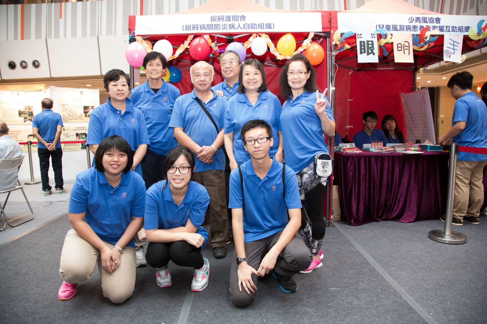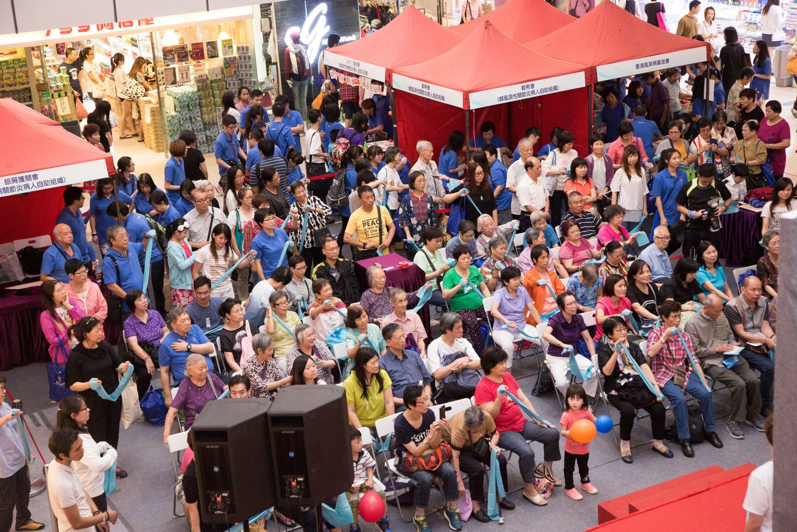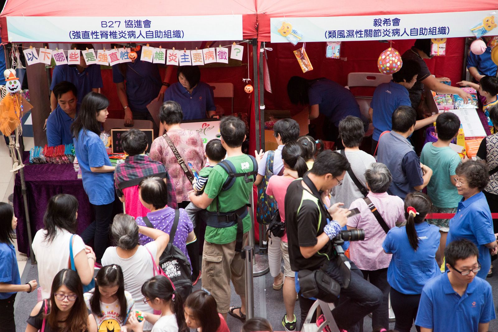 除了舞台上豐富的節目外,當日還有由6個病人自助組織(毅希會、樂晞會、香港強脊會、B27協進會、銀屑護關會及少青風協會)設計的遊戲攤位,讓現場數以千計的大小朋友樂在其中。香港物理治療學會帶領的運動示範十分吸引,參加者都跟著治療師一起運動。