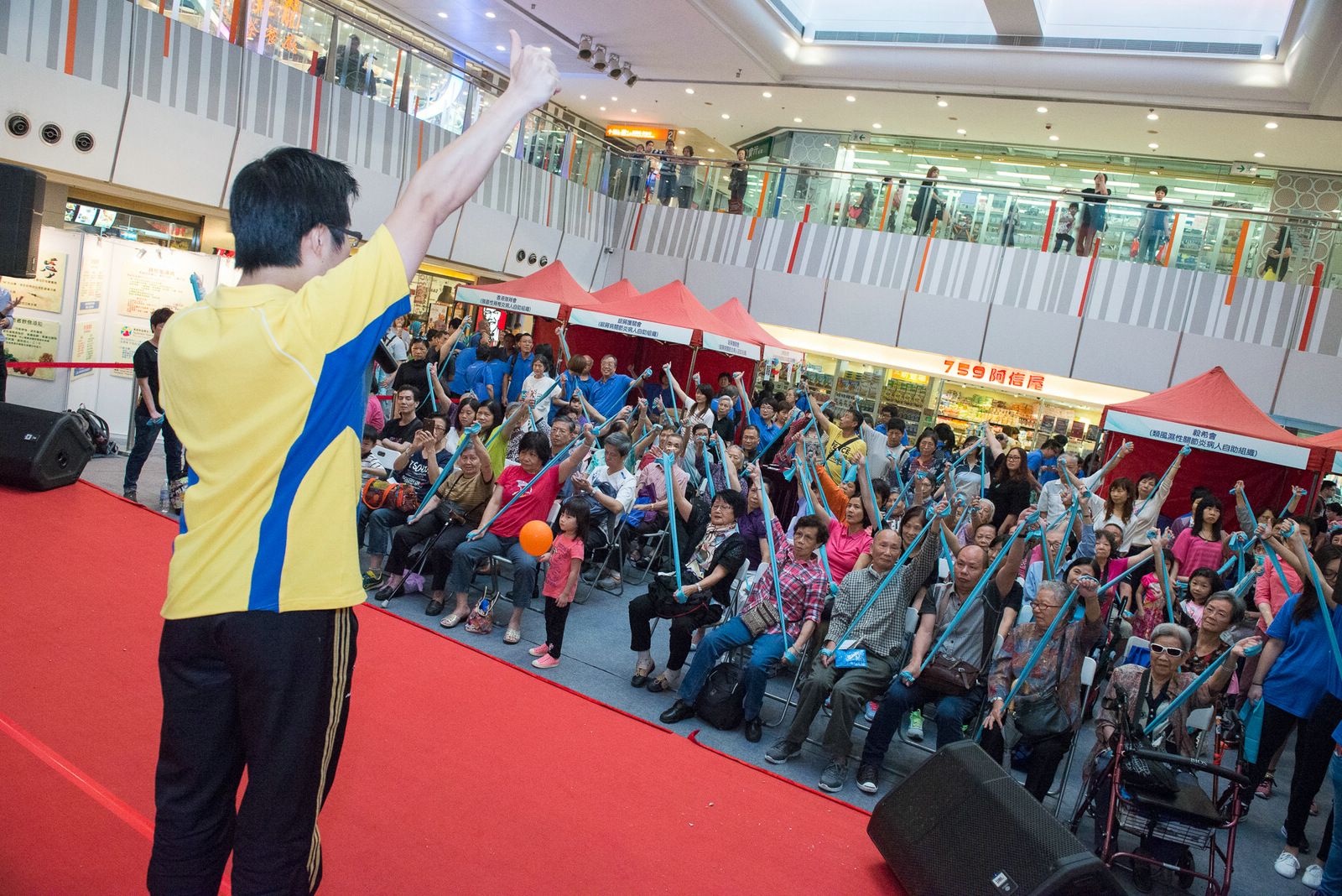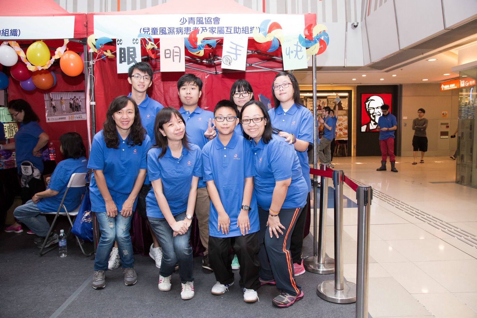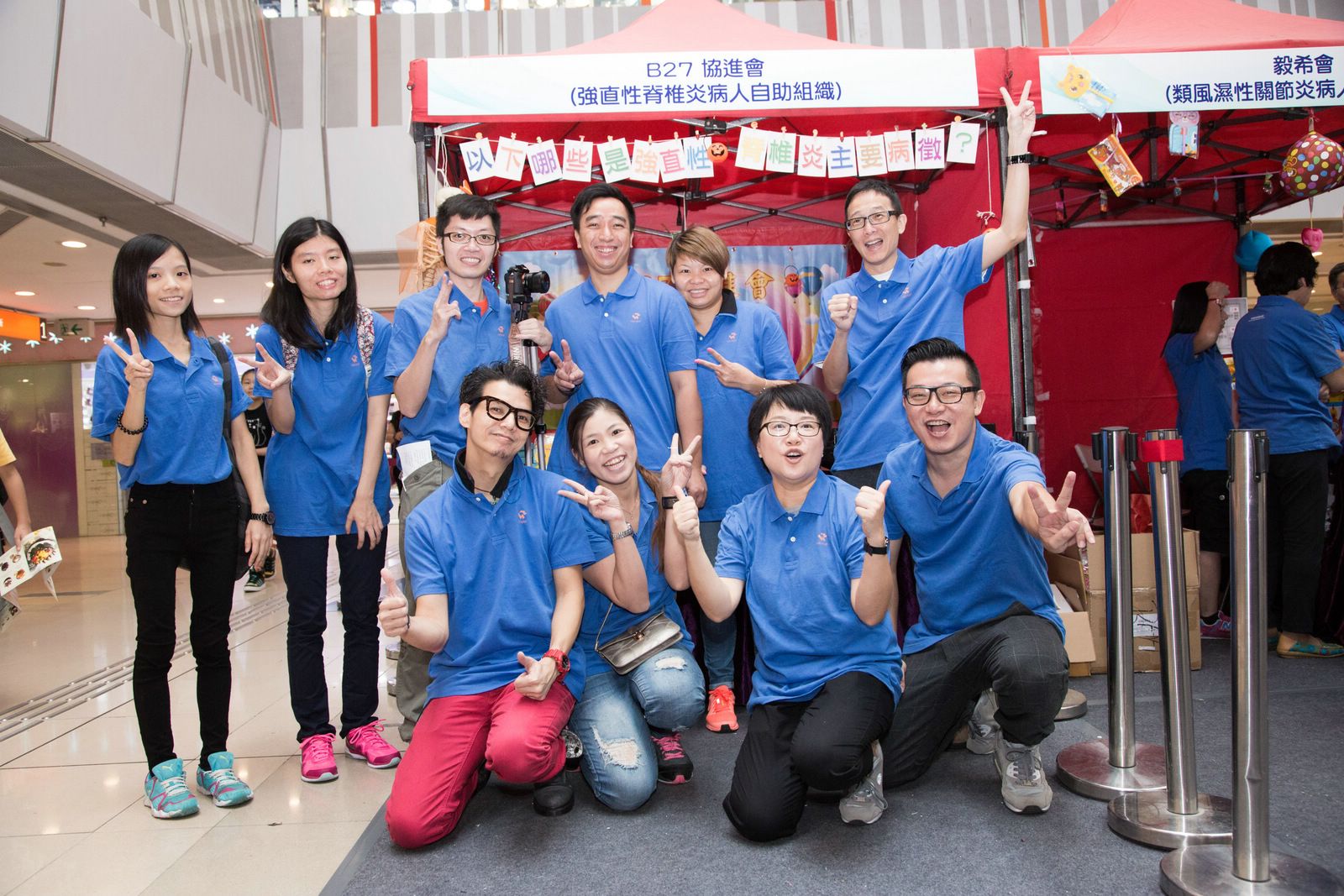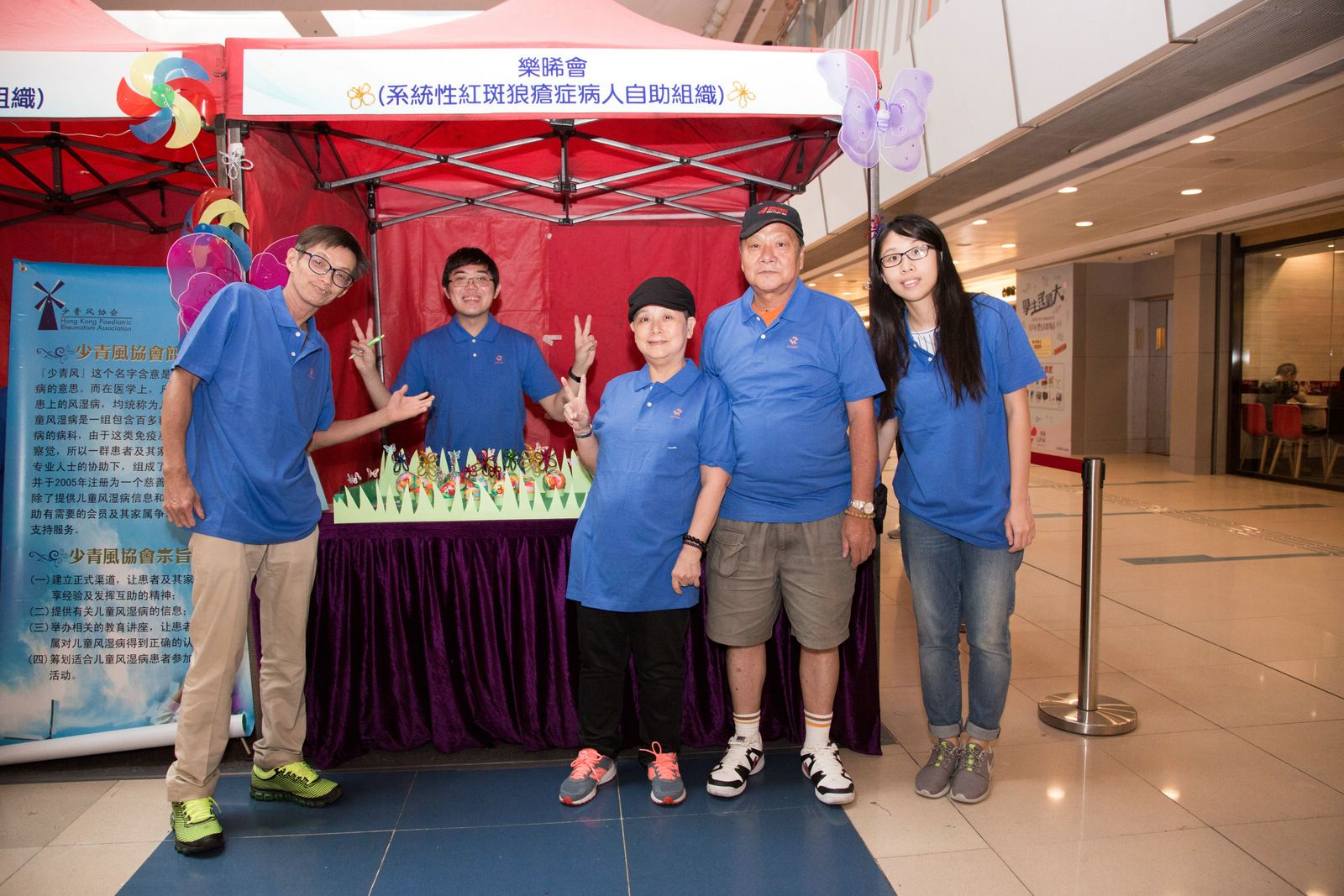 除了舞台上豐富的節目外,當日還有由6個病人自助組織(毅希會、樂晞會、香港強脊會、B27協進會、銀屑護關會及少青風協會)設計的遊戲攤位,讓現場數以千計的大小朋友樂在其中。香港物理治療學會帶領的運動示範十分吸引,參加者都跟著治療師一起運動。