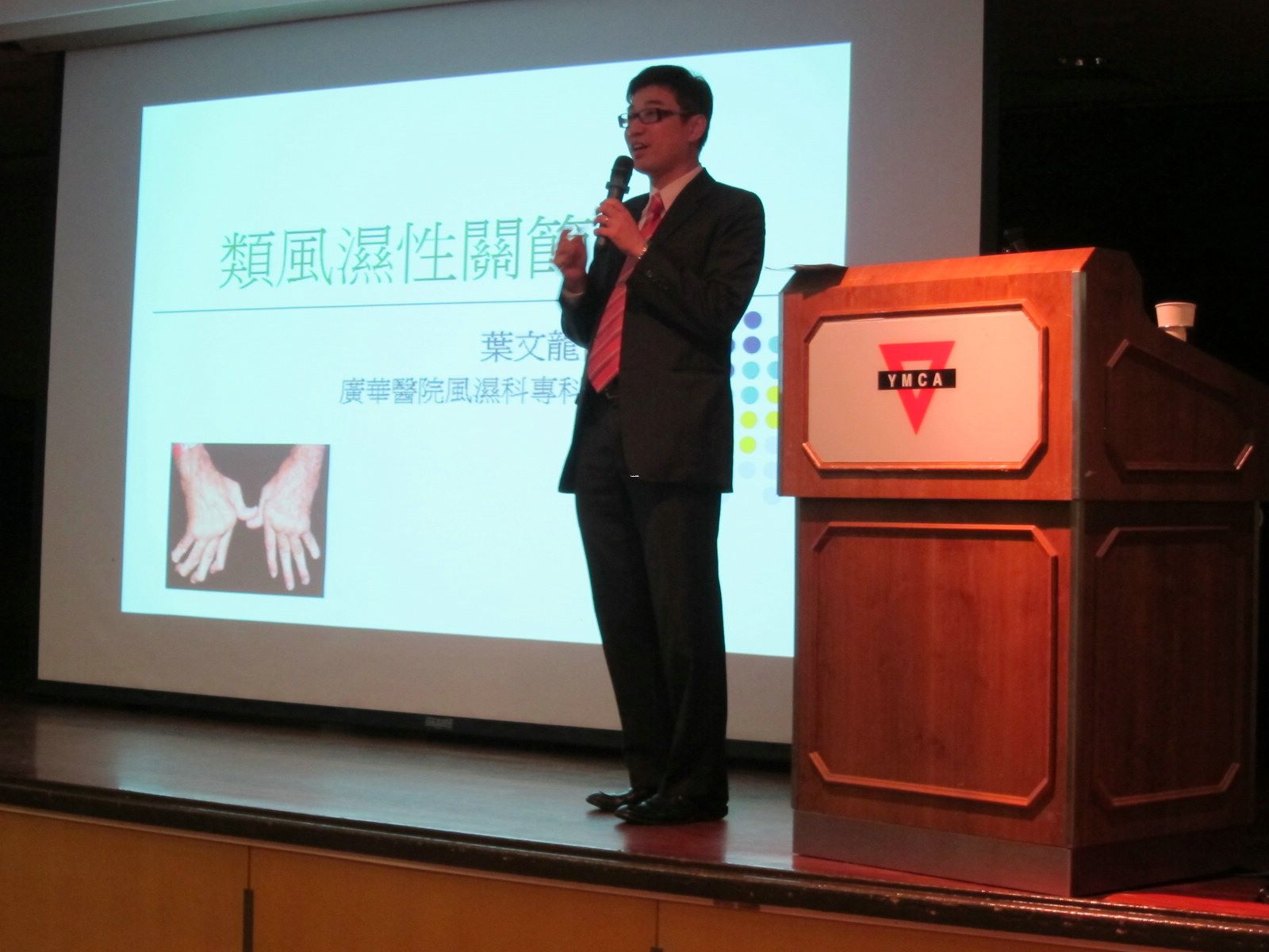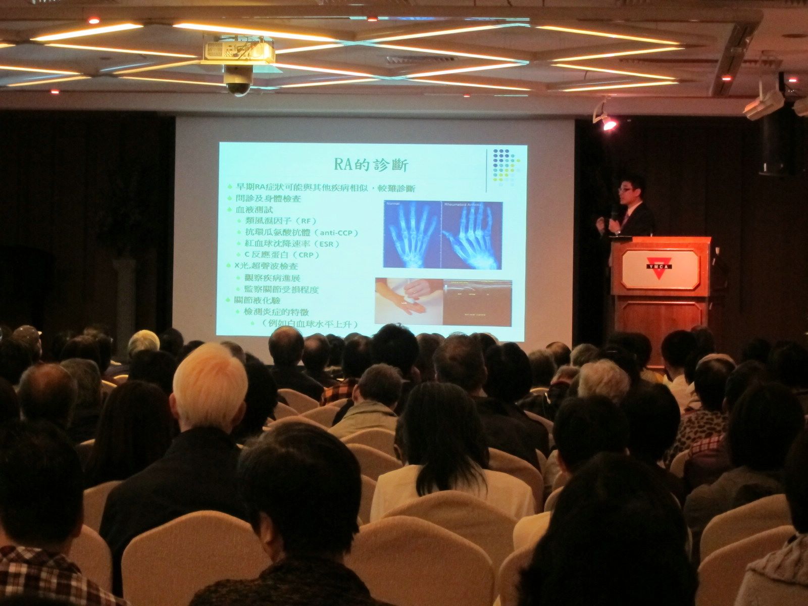 To encourage patients facing the difficulties of Rheumatoid arthritis (RA), a talk about RA – “treatments and tips for everyday life” was held at YMCA of Hong Kong on 6th April 2013. There were 167 participants in total.