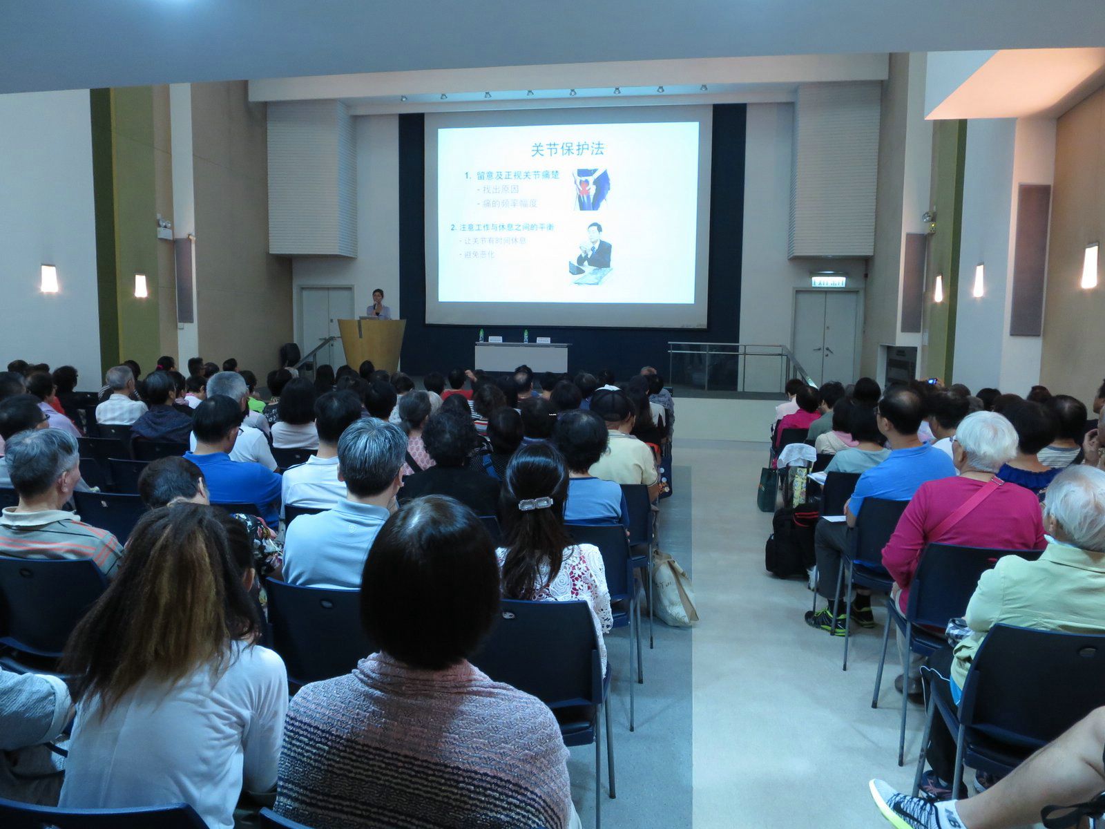 Joint protection and training was taken part in Hall, 1/F, Duke of Windsor Social Service Building on 5th September 2015. The talk aimed to enhance people’s understanding of the role and function of physiotherapy and occupational therapy in treating arthritis and rheumatism. There were 227 participants in total.