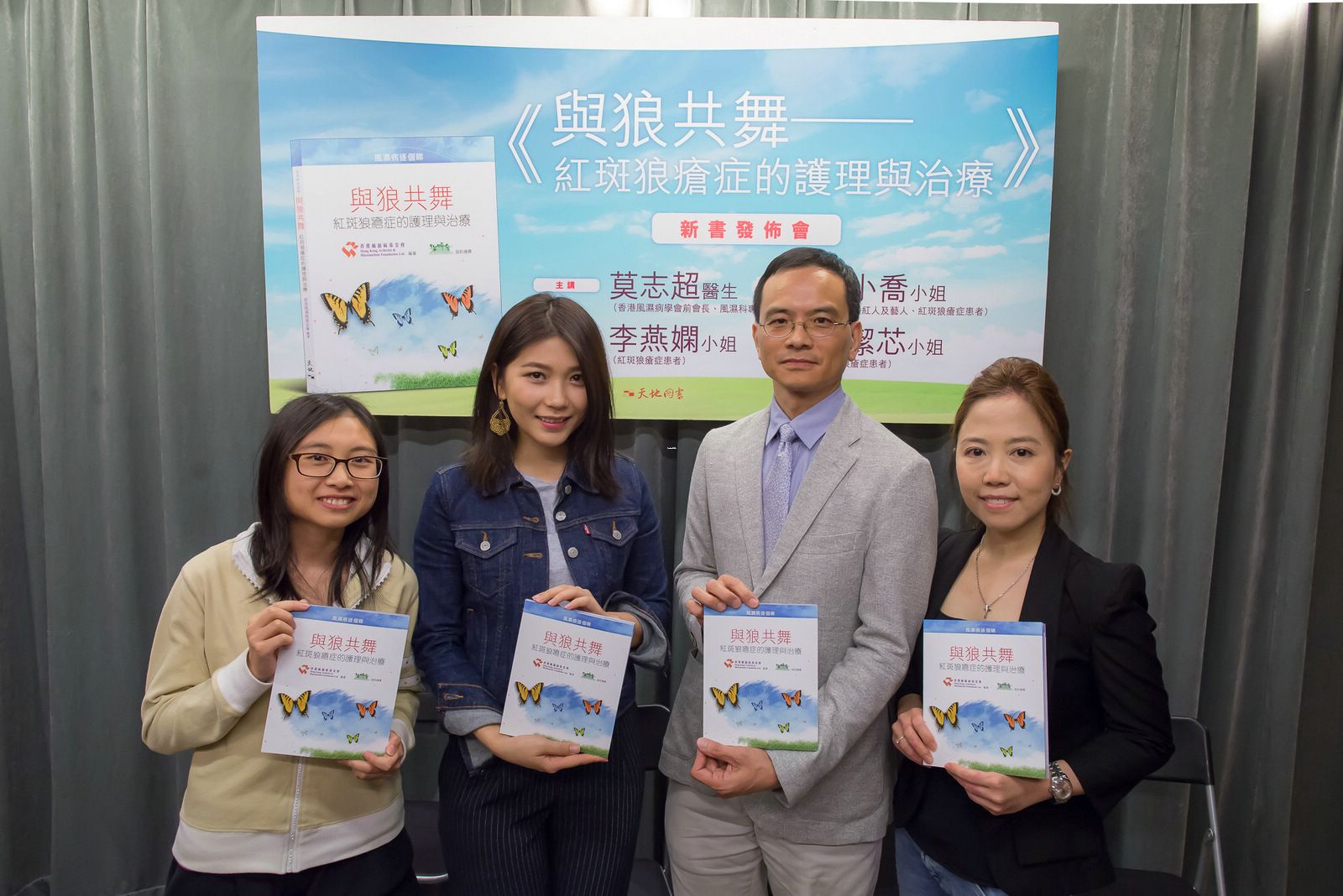 《與狼共舞 — 紅斑狼瘡症的護理與治療》的新書發佈會在2017年5月27日(星期六)下午2時30分於灣仔莊士敦道30號天地圖書地庫展覽廳舉行,香港風濕病學學會前會長莫志超醫生、網絡紅人及藝人杜小喬小姐,以及兩位紅斑狼瘡症病患者李燕嫻小姐(Yvonne)和葉潔芯小姐(Rainbow)擔任講者,為公眾簡述紅斑狼瘡的資訊及最新病患者數字,三位病患者分享抗病經歷。