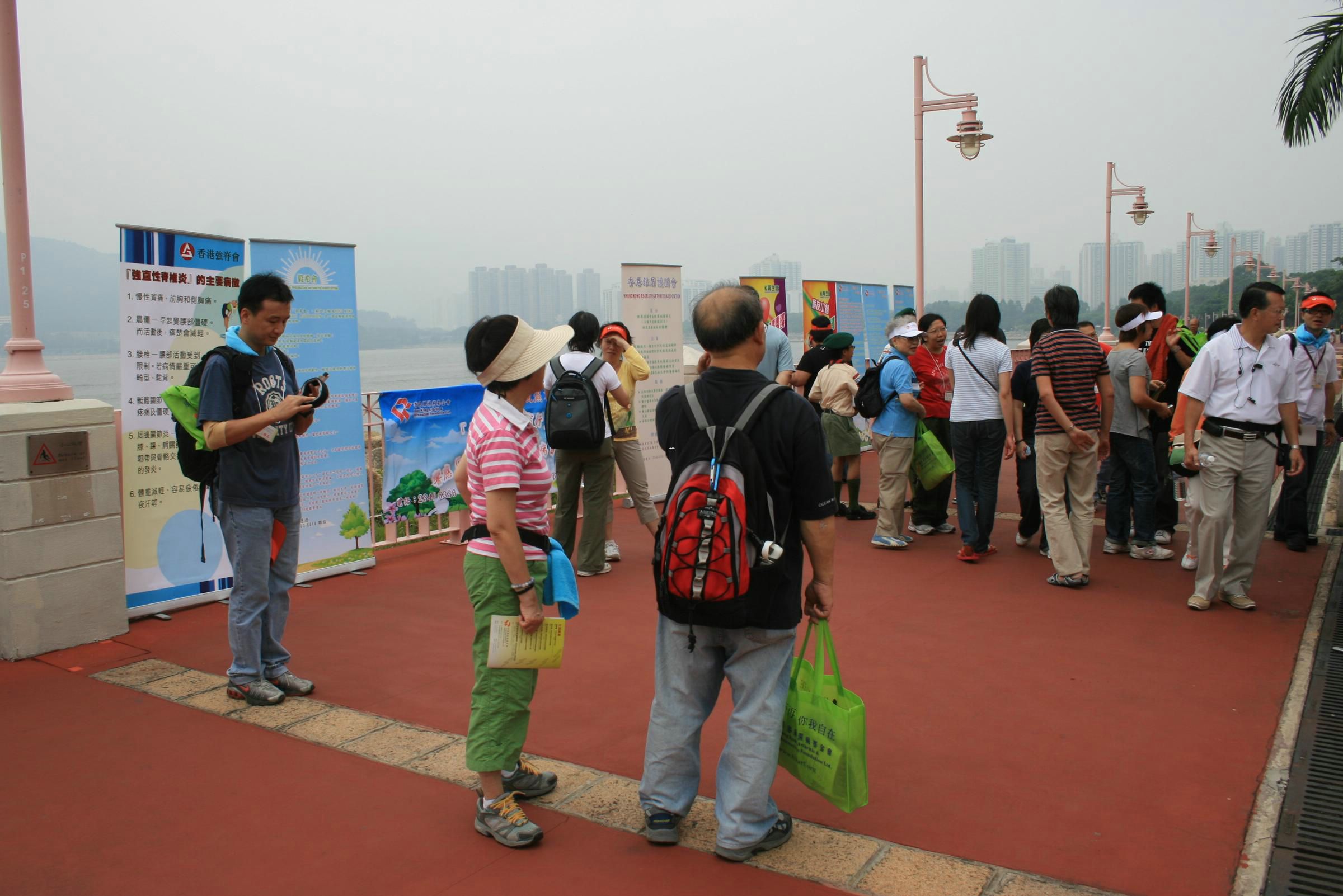當然,不能缺少的就是當日的主題:「海濱行」。嘉賓、基金會委員和三百多位參加者一起在大埔海濱公園的海濱長廊進行步行。當天的天氣可謂:天公造美!天色光亮而不會太曬,加上海濱旁的微風陣陣,可算是步行的最好時間。在海濱長廊上,基金會還與各大藥廠合作設置了一些攤位遊戲供參加者參與,除了有一些小禮物外,也在攤位上擺放有關正確步行的小貼士和有關風濕病的資訊,希望公眾人士能夠更加關注風濕病和風濕病患者!