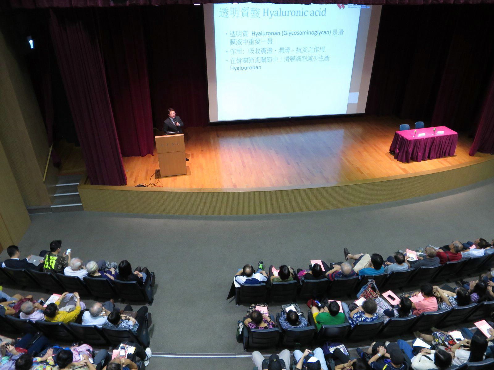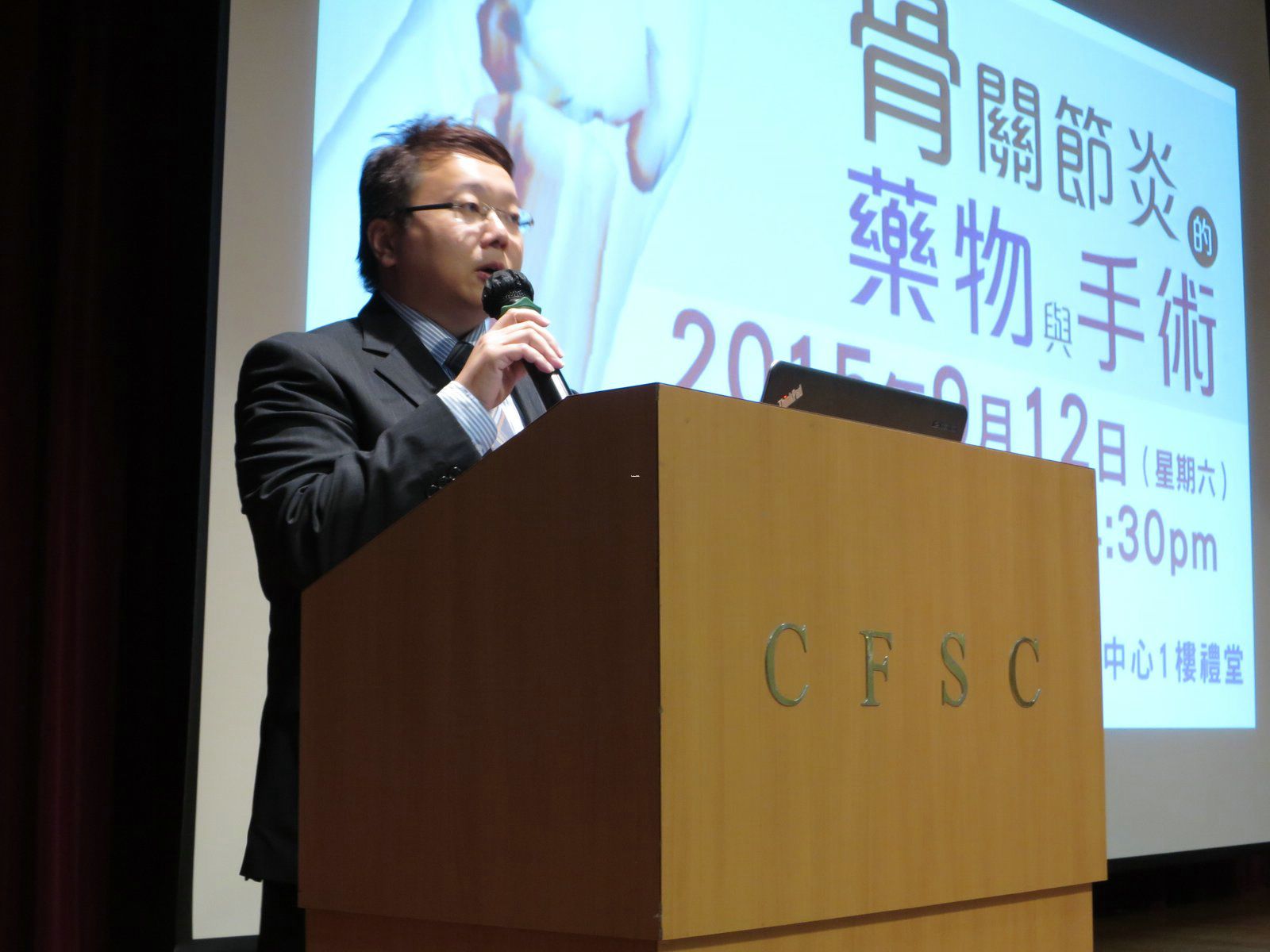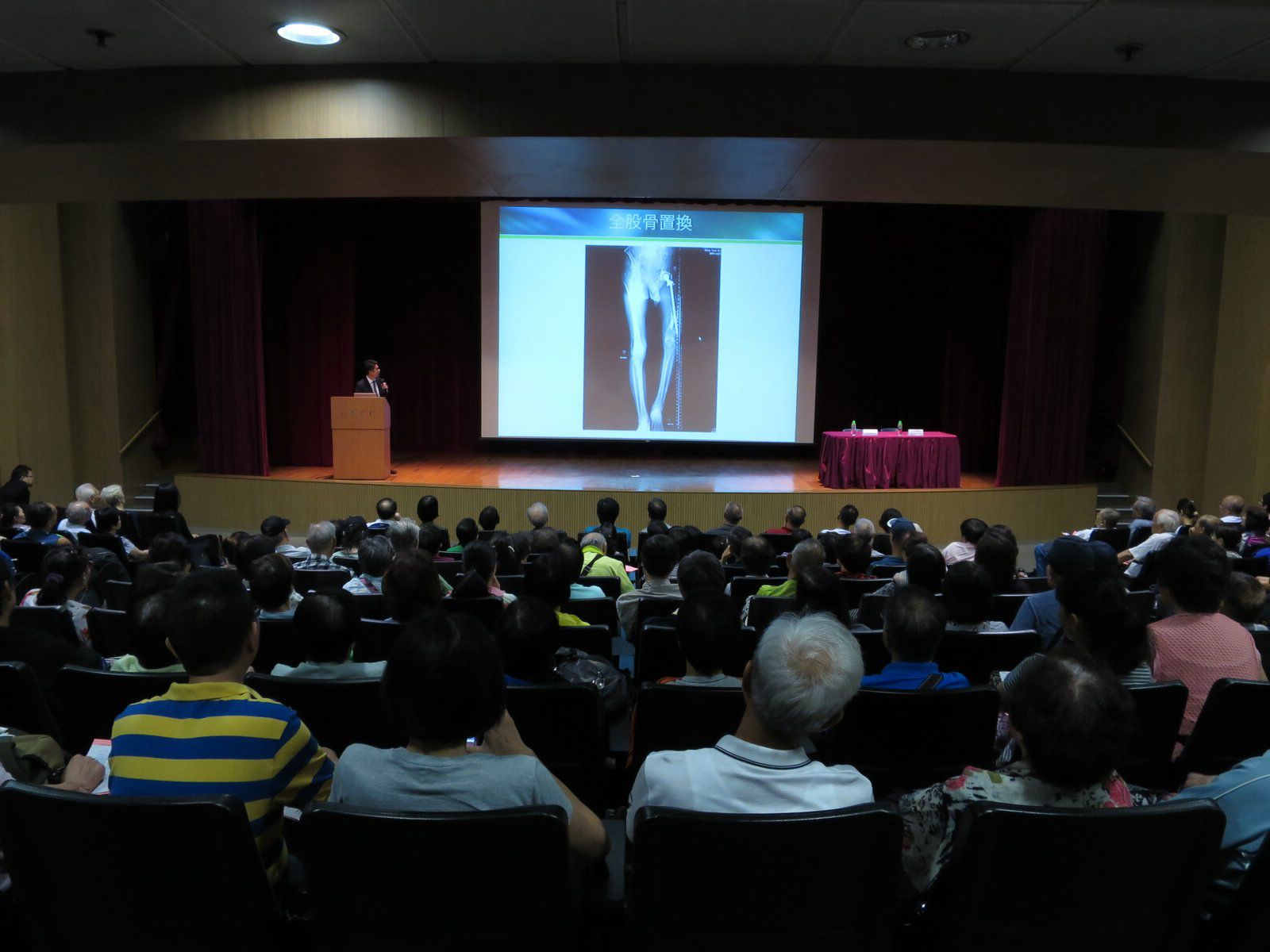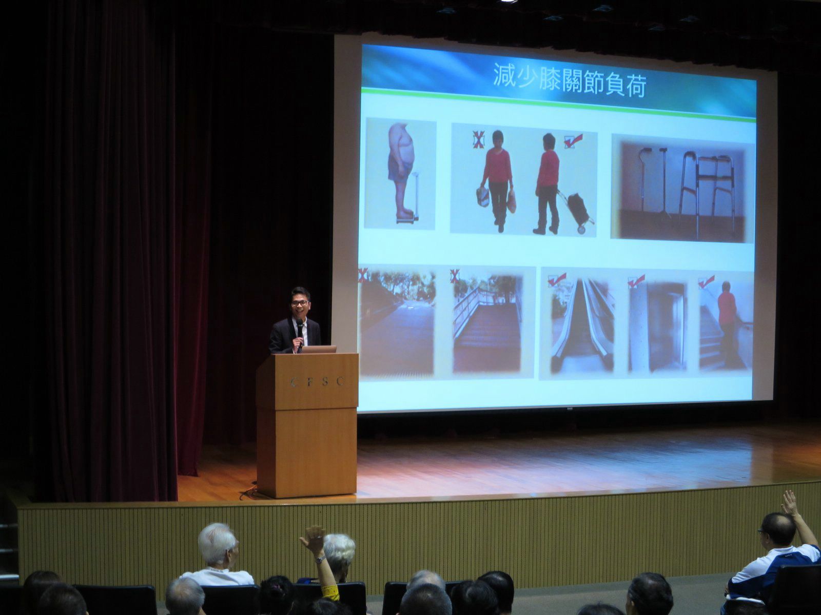 及後,骨科專科醫生李威鴻醫生指出關節疼痛很多時與體重和姿勢有關,因此建議患者應減重,並善用輔助工作以減少膝關節的負荷,例如盡可能利用扶手電梯、柺杖、手推車等,亦是改善痛症及保護關節的好方法。接著李醫生介紹各種人工關節置換手術,分析其做法和成效,他指現今的技術越趨成熟,大部分關節變形的問題都能處理。李醫生利用一些真實的個案,說明患者在接受手術後有明顯的改善,加上好好保養,人工關節能夠使用十數年亦不會出現問題,加強參加者對關節置換手術的信心。