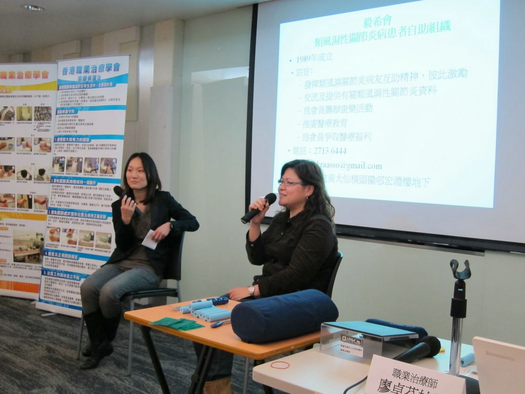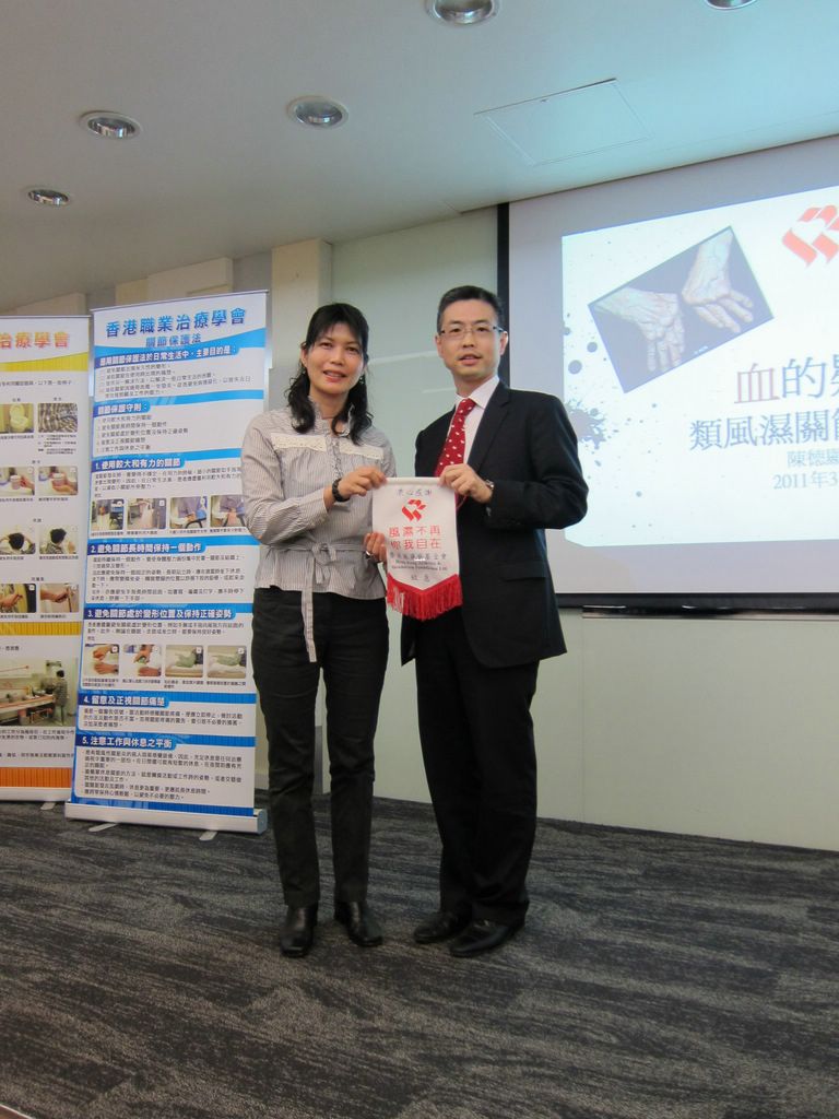 有見及此,香港風濕病基金會於2011年3月12日假溫莎公爵社會服務大廈舉辦名為「血的疑惑」的類風濕性關節炎講座,由風濕科專科醫生陳德顯醫生和職業治療師廖卓芬姑娘主講。陳醫生主要講解類風濕性關節炎病徵、最新診斷和治療指引及解釋病患者驗血的原因,而廖姑娘則向在場約130名參加者介紹適合類風濕性關節炎病患者使用的工具,指出患者生活上要注意的細節,及提供日常生活小貼示。兩位講者在問答環節亦積極解答參加者的疑慮,讓他們更了解自身的情況。