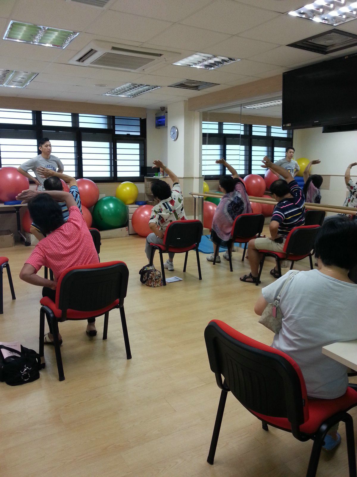當日由上午10:30開始,每小時有12位參加者,先輪流進行平衡力測試、身體柔軟度測試、脂肪比例測試、骨質密度檢查及新增一項尿酸值檢查。然後由物理治療師為參加者個別講解檢測結果,最後以小組形式由物理治療師教授合適的運動。