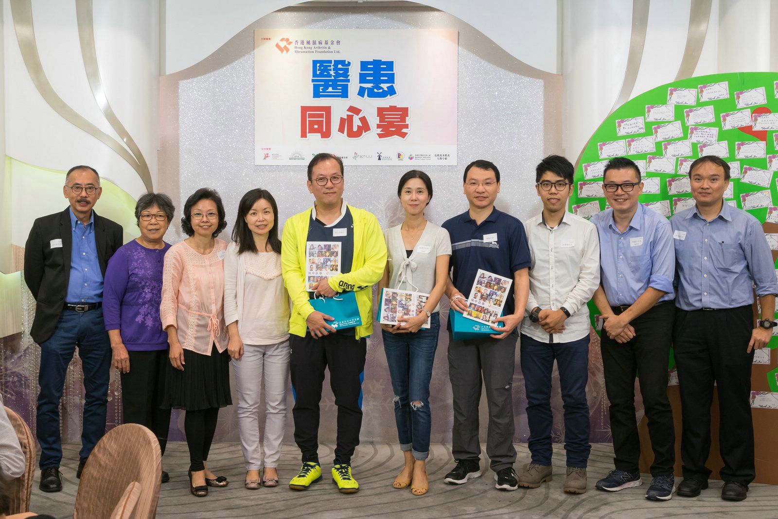 除了公眾活動,當日亦進行了「醫患同心宴」,聚集不同的風濕科醫療團隊及各科病人自助組織,在葵芳一間酒樓內午膳,目的希望提供機會讓醫患之間有更深入的認識。午宴當中有不同界別的真情分享,包括:
