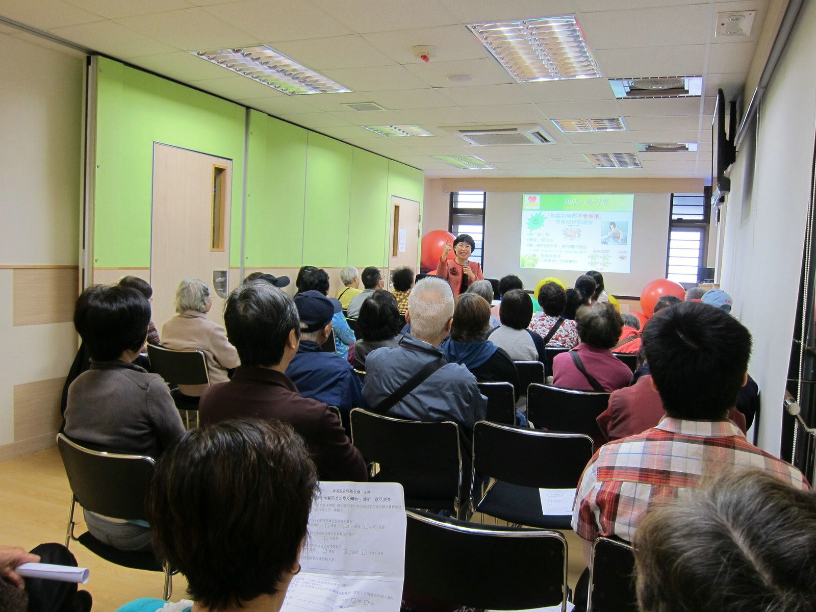 為加強區內長者對膝蓋及髋關節痛等退化性關節炎的認識,基金會在3月22日上午,於香港風濕病基金會賽馬會病人資源及訓練中心舉行講座,當天共有34名參加者出席。