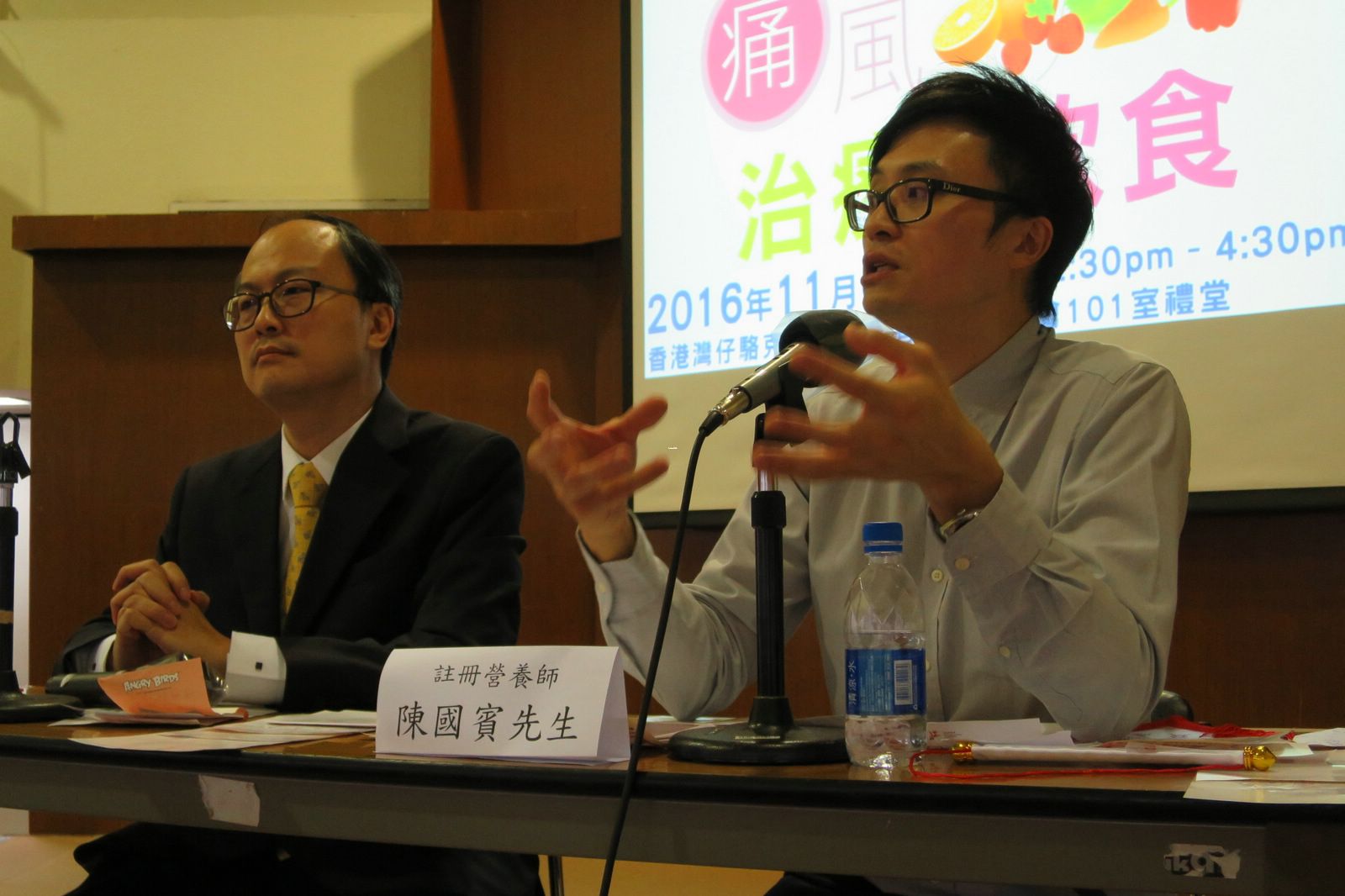 稍後,註冊營養師陳國鑌先生向參與者詳細講解飲食對治療疾病的效用。他以一則與工作夥伴討論椰子水能治風濕病的趣談作引子,說明常見謬誤。坊間很多聲稱能醫治風濕症的飲料,如山楂水、烏梅水,甚至木瓜綠茶等,其實無甚療效,不過僅讓患者多攝取水份而已。身體自身有平衡機制,血液的酸鹼度並不那麼容易受食品影響,胡亂服用所謂「養生」飲料,更可能適得其反。