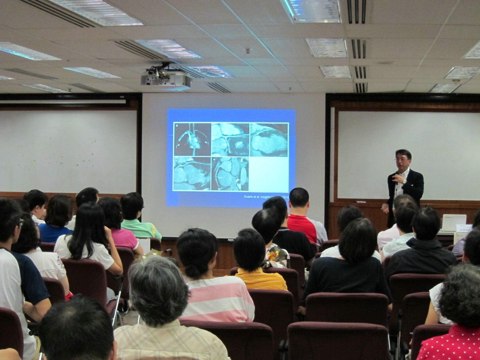 及後,香港大學李嘉誠醫學院兒童及青少年科學系小兒心臟科張耀輝教授更深入講解川崎症的治療方法,分享各地的研究結果。此外,張教授就川崎症所引發的併發症如血管硬化、血管瘤等作詳盡的補充,介紹各種檢查及治療方法,同時說明延遲醫治的後果,呼籲參加者應從小培養小孩子的良好飲食習慣,保持心血管的健康。