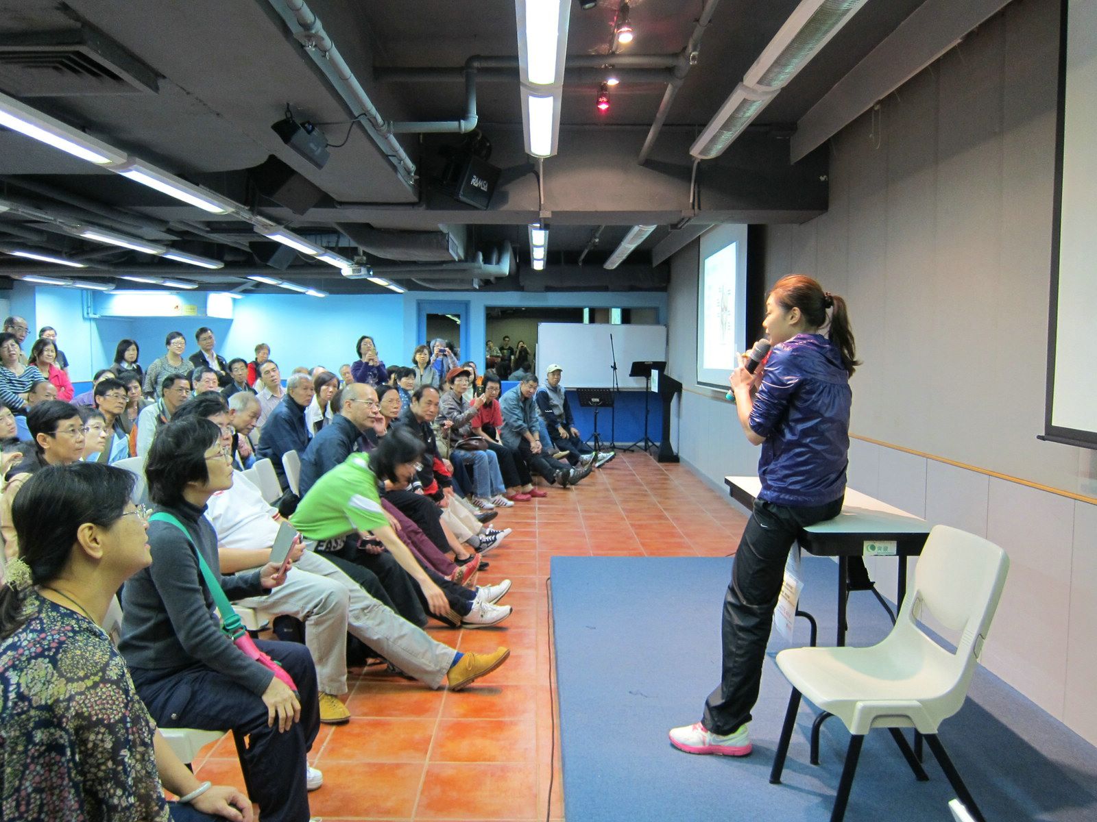 其後物理治療師岑幸貞姑娘講解運動的重要性,並詳細解說運動前要如何先自我治理關節,再教授合適的運動。岑姑娘亦講解了大家日常生活要注意的姿勢,以及如何使用扶助器具,參加者都感到有關資訊非常實用。