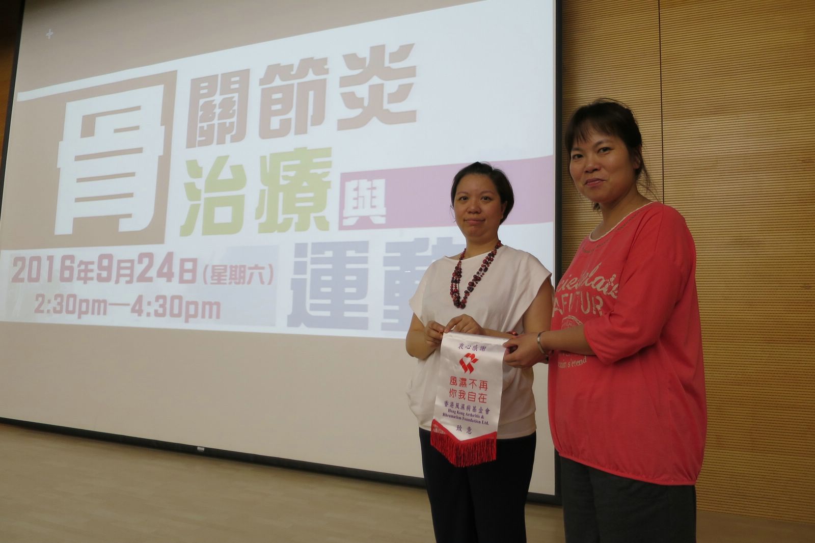 香港風濕病基金會及香港復康會社區復康網絡在9月24日,於北角百福道21號香港青年協會大廈8樓禮堂合辦「骨關節炎治療與運動」講座,當天共有135名參加者出席。