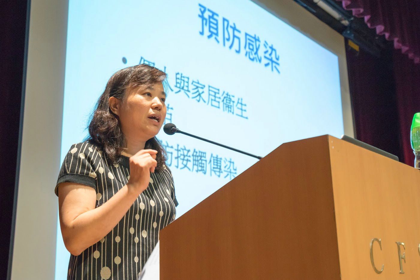 及後,風濕科專科資深護師余燕麗姑娘先講解如何保持個人與家居衛生,特別提到洗手的重要性及正確做法,希望參加者時常警惕及保持健康的生活。她補充說明政府本年度防疫注射計劃,重申參加者應選擇適合自己的疫苗,她指若能在發病前或停藥後才注射疫苗是最好的,但這對風濕科病友並不容易。余姑娘指風濕科病友可在病情較為穩定時接種,就算疫苗的效果沒有那麼理想,但比沒有任何抗體為佳,因此建議風濕科患者應與醫護人員商量,尋找一個適合的時機及接種適合的疫苗。